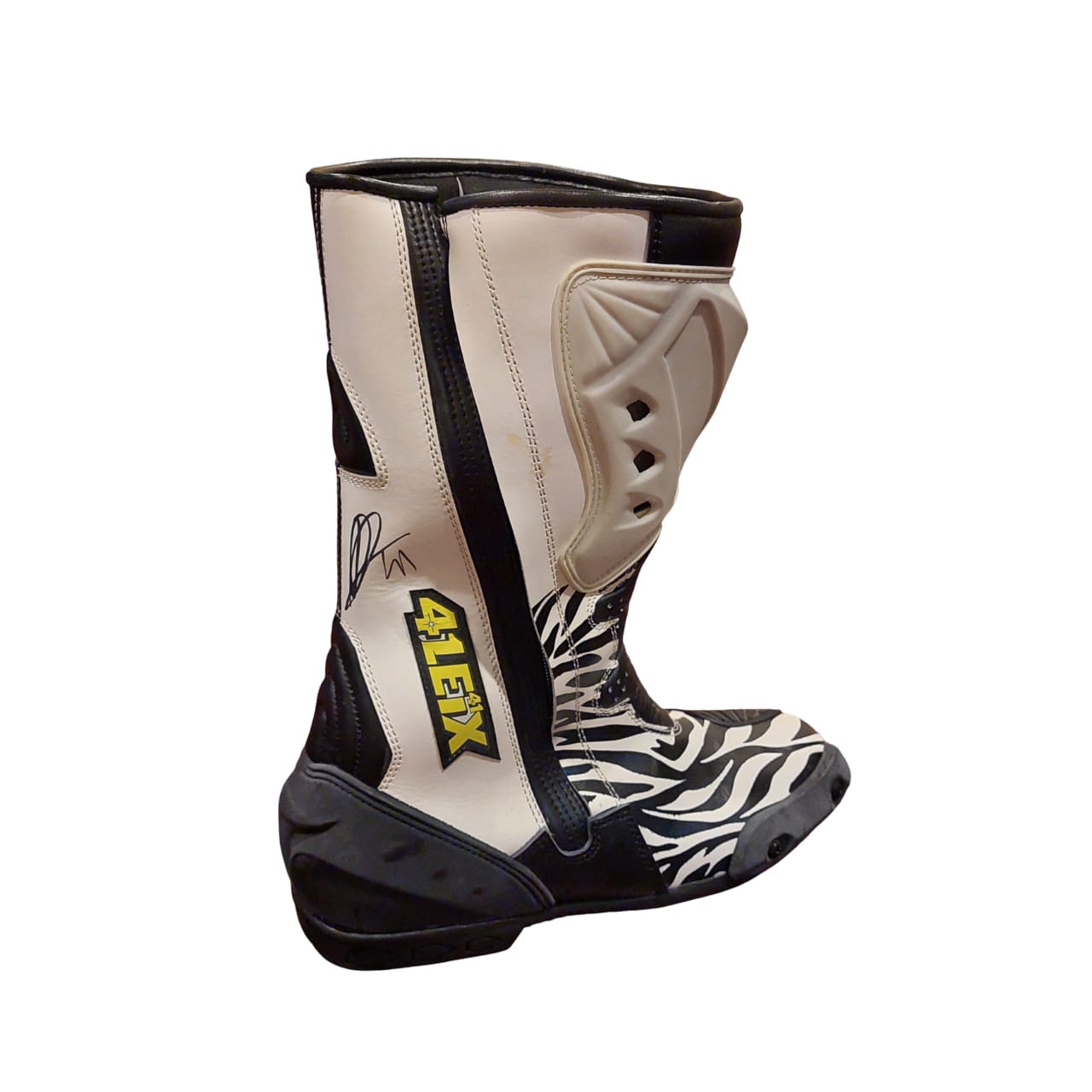This autographed MotoGP replica leather boot is a stunning piece of memorabilia for any motorsport enthusiast. Crafted from high-quality leather, the boot features vibrant team colors and sponsor logos, showcasing the spirit of MotoGP.