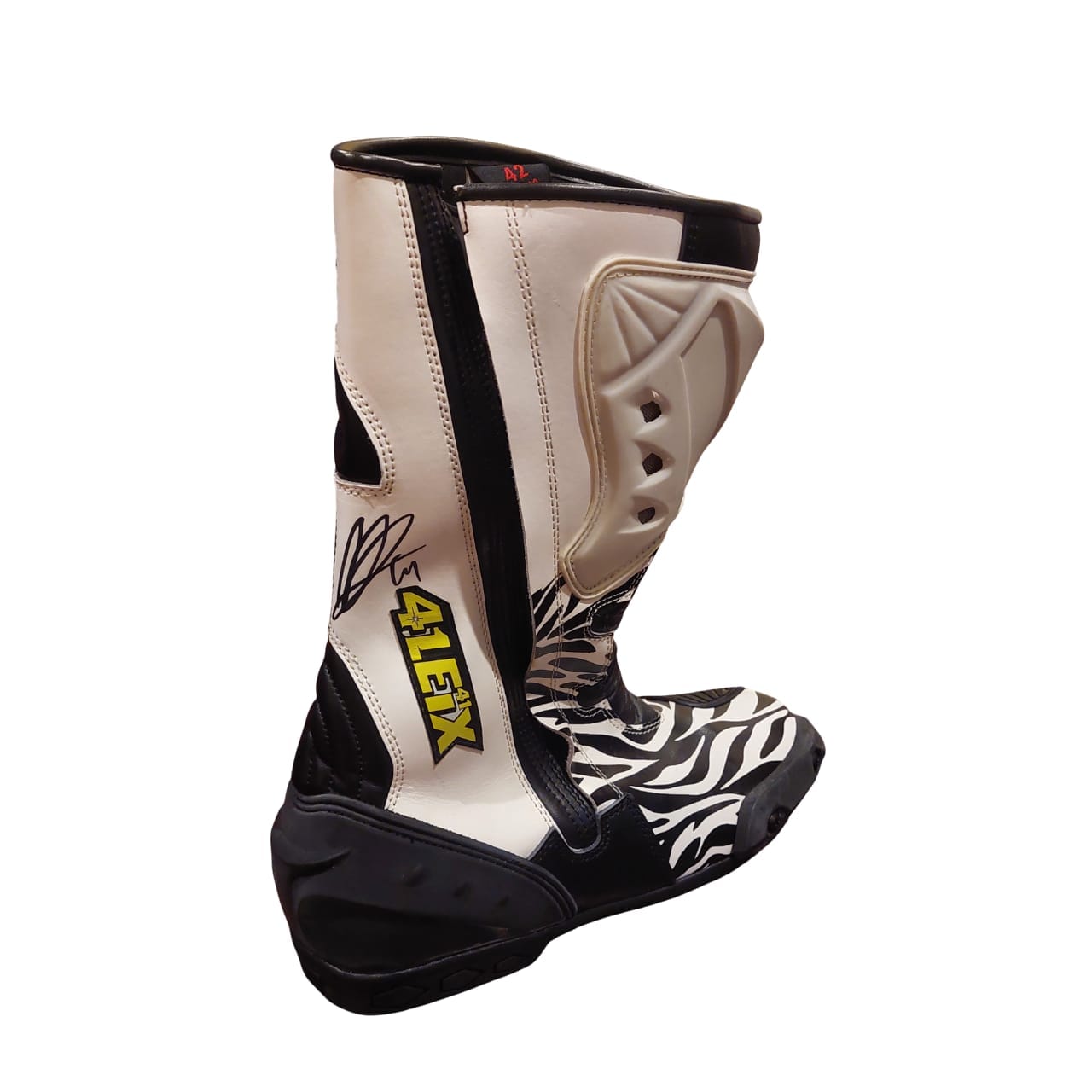 This autographed MotoGP replica leather boot is a stunning piece of memorabilia for any motorsport enthusiast. Crafted from high-quality leather, the boot features vibrant team colors and sponsor logos, showcasing the spirit of MotoGP.