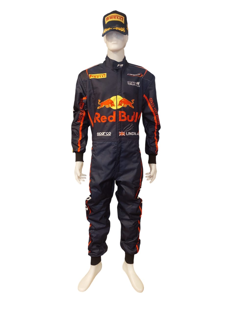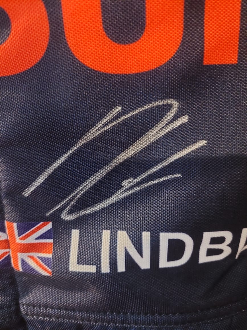 This Arvid Lindblad signed replica race suit is a fantastic piece of memorabilia for any Formula 1 enthusiast. Crafted with attention to detail, this replica mirrors the design of the suits worn by him during his races, featuring vibrant team colors and official logos. The suit is beautifully signed by the driver himself, adding a personal and authentic touch that enhances its value. Perfect for display in a collection or as a standout item at motorsport events, this replica race suit celebrates his achievements on the track and is an essential addition for fans looking to commemorate his rising career in Formula 1.