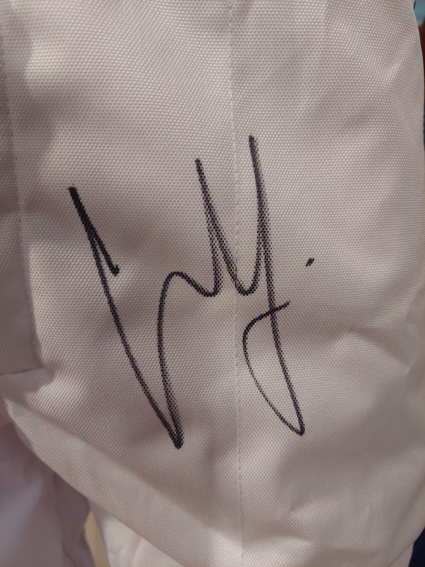 This Carlos Sainz signed replica race suit is a fantastic piece of memorabilia for any Formula 1 enthusiast. Crafted with attention to detail, this replica mirrors the design of the suits worn by him during his races, featuring vibrant team colors and official logos. The suit is beautifully signed by the driver himself, adding a personal and authentic touch that enhances its value. Perfect for display in a collection or as a standout item at motorsport events, this replica race suit celebrates his achievements on the track and is an essential addition for fans looking to commemorate his rising career in Formula 1.