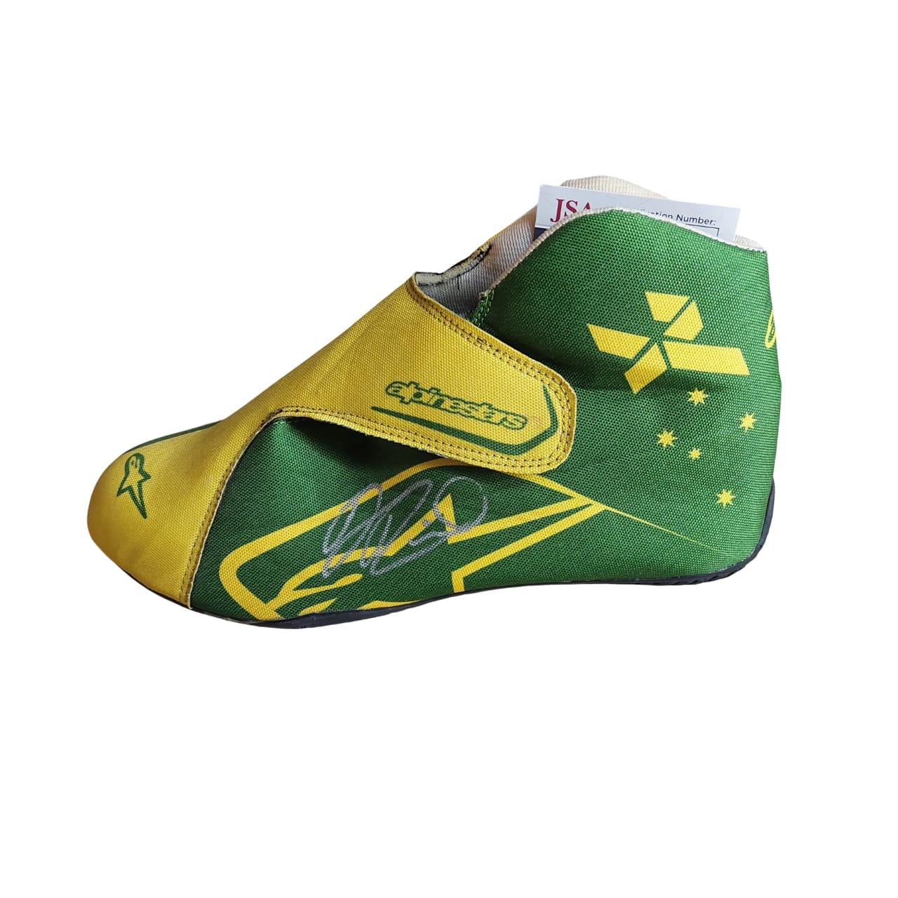 This signed Formula 1 replica boot is a must-have for any motorsport enthusiast or collector. Crafted with attention to detail, the boot mirrors the design worn by him during his racing career, showcasing the iconic branding and colors associated with his team.