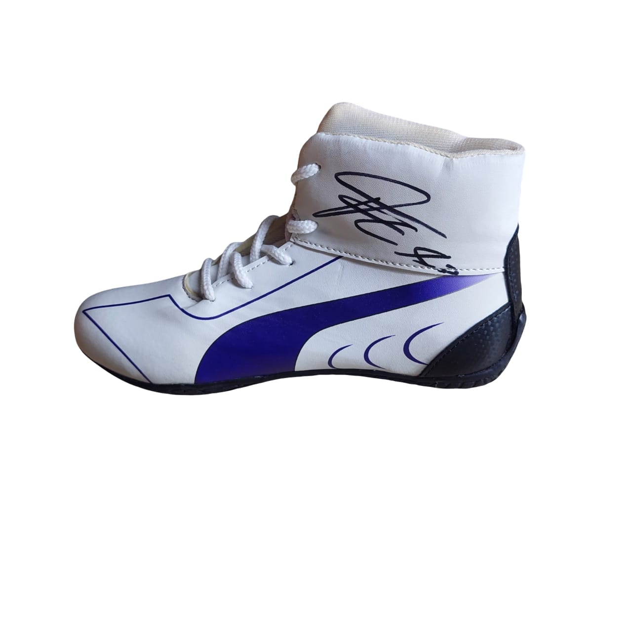 This signed Formula 1 replica boot is a must-have for any motorsport enthusiast or collector. Crafted with attention to detail, the boot mirrors the design worn by him during his racing career, showcasing the iconic branding and colors associated with his team.