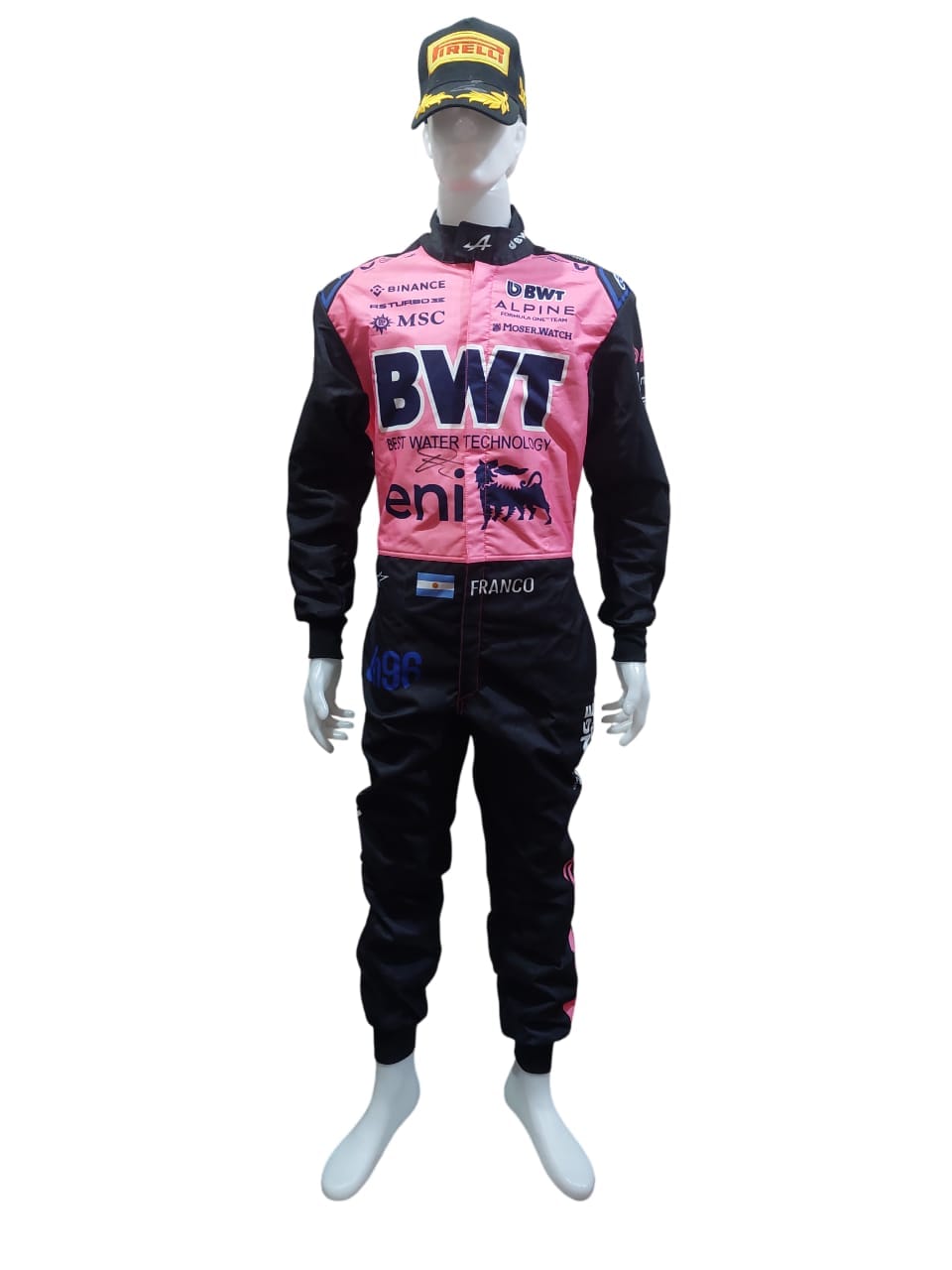 This Franco Colapinto signed replica race suit is a fantastic piece of memorabilia for any Formula 1 enthusiast. Crafted with attention to detail, this replica mirrors the design of the suits worn by him during his races, featuring vibrant team colors and official logos. The suit is beautifully signed by the driver himself, adding a personal and authentic touch that enhances its value. Perfect for display in a collection or as a standout item at motorsport events, this replica race suit celebrates his achievements on the track and is an essential addition for fans looking to commemorate his rising career in Formula 1.