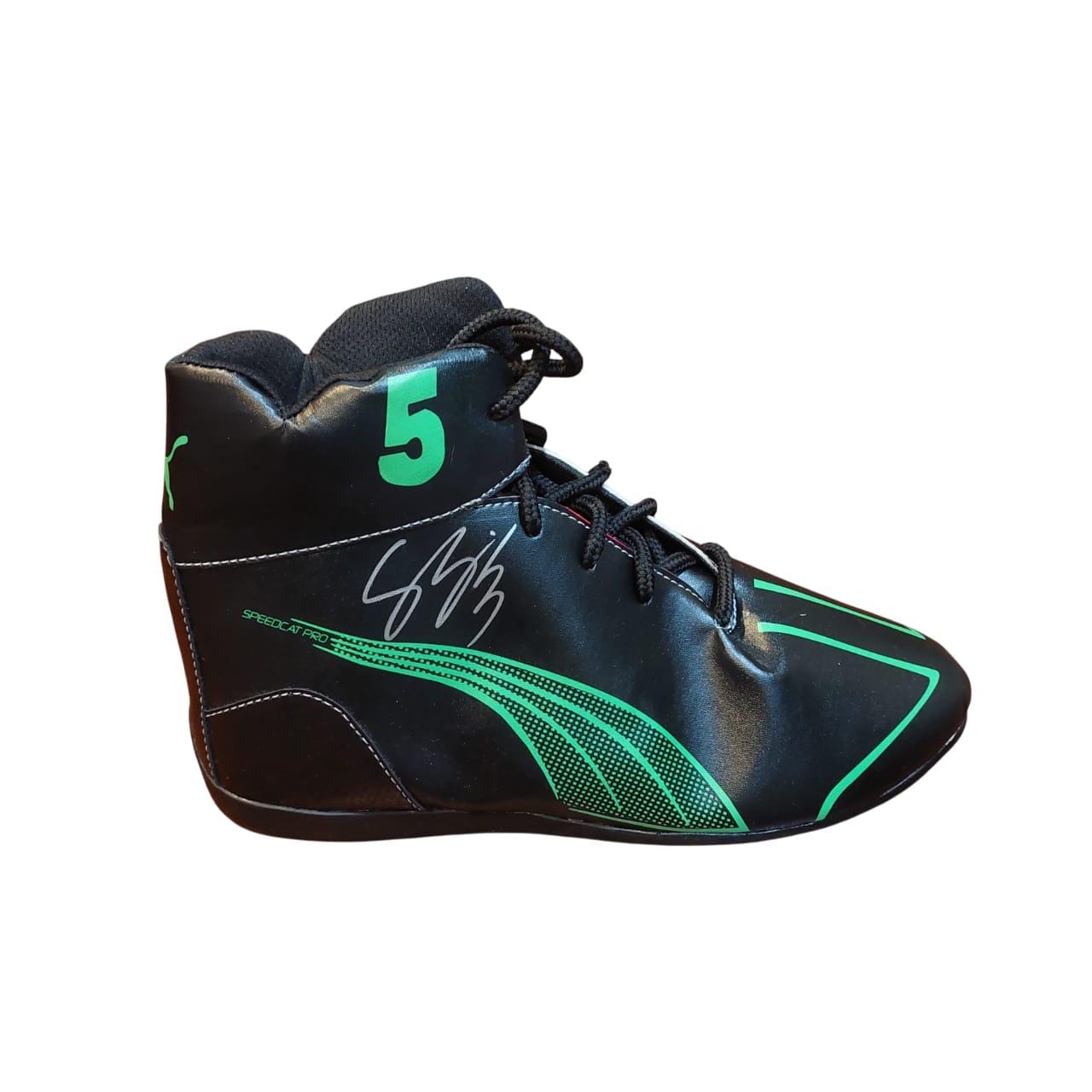 This signed Formula 1 replica boot is a must-have for any motorsport enthusiast or collector. Crafted with attention to detail, the boot mirrors the design worn by him during his racing career, showcasing the iconic branding and colors associated with his team.