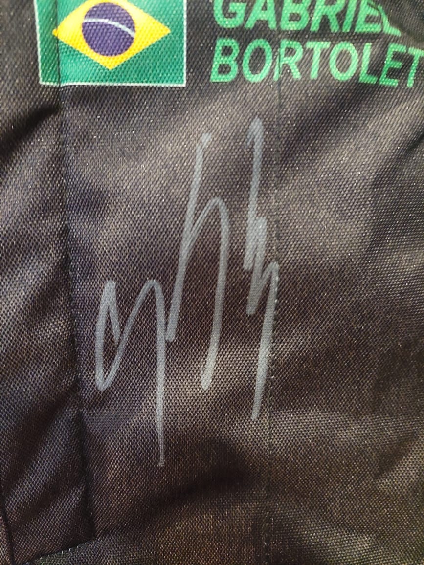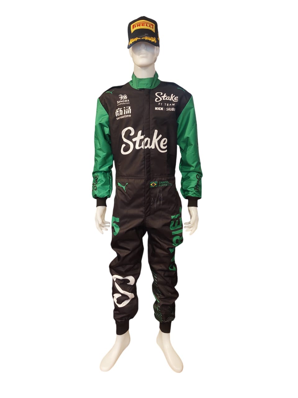 This Gabriel Bortoleto signed replica race suit is a fantastic piece of memorabilia for any Formula 1 enthusiast. Crafted with attention to detail, this replica mirrors the design of the suits worn by him during his races, featuring vibrant team colors and official logos. The suit is beautifully signed by the driver himself, adding a personal and authentic touch that enhances its value. Perfect for display in a collection or as a standout item at motorsport events, this replica race suit celebrates his achievements on the track and is an essential addition for fans looking to commemorate his rising career in Formula 1.