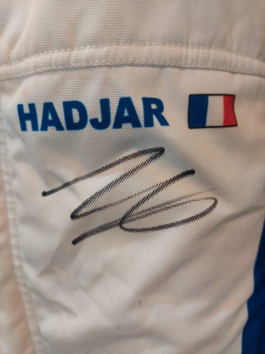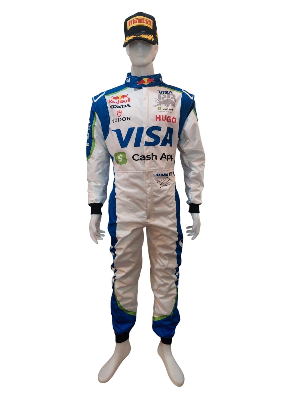 This Isack Hadjar signed replica race suit is a fantastic piece of memorabilia for any Formula 1 enthusiast. Crafted with attention to detail, this replica mirrors the design of the suits worn by him during his races, featuring vibrant team colors and official logos. The suit is beautifully signed by the driver himself, adding a personal and authentic touch that enhances its value. Perfect for display in a collection or as a standout item at motorsport events, this replica race suit celebrates his achievements on the track and is an essential addition for fans looking to commemorate his rising career in Formula 1.