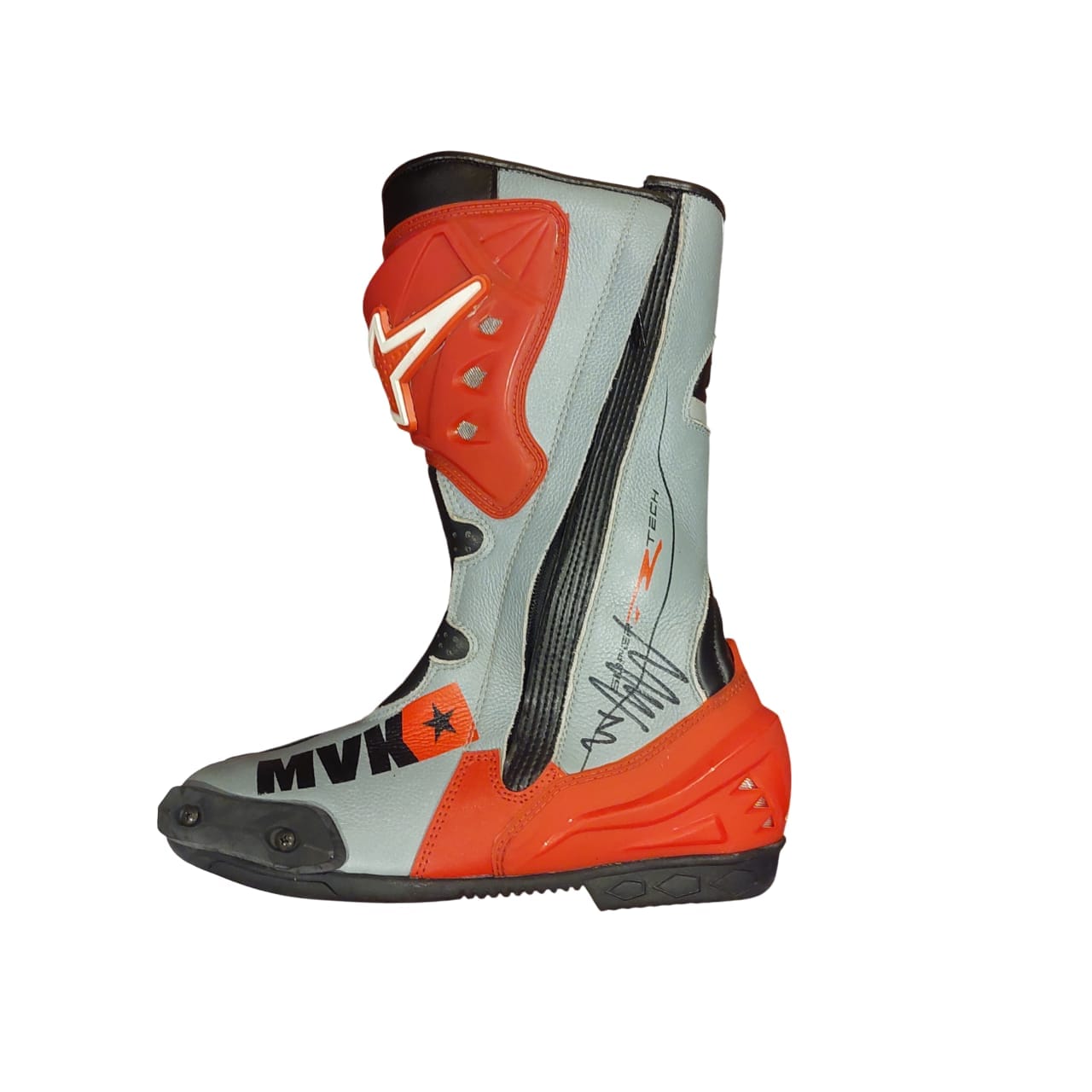 This autographed MotoGP replica leather boot is a stunning piece of memorabilia for any motorsport enthusiast. Crafted from high-quality leather, the boot features vibrant team colors and sponsor logos, showcasing the spirit of MotoGP.