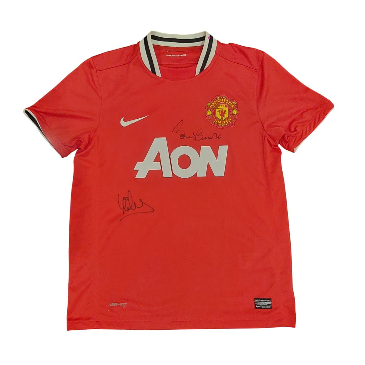 MICHAEL OWEN AND BOBBY CHARLTON SIGNED MANCHESTER UNITED FOOTBALL SHIRT