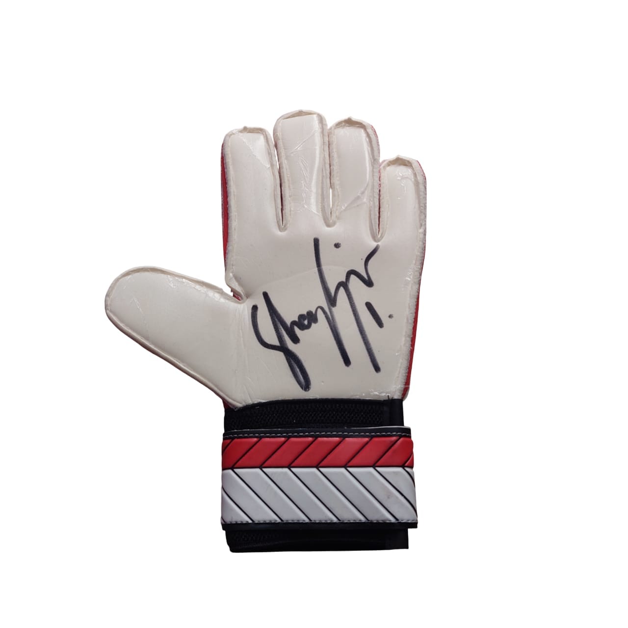 Introducing this signed goalkeeper glove an exceptional piece of memorabilia for any football enthusiast.