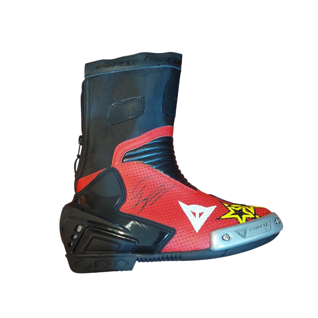 This autographed MotoGP replica boot is a stunning piece of memorabilia for any motorsport enthusiast. Crafted from high-quality leather, the boot features vibrant team colors and sponsor logos, showcasing the spirit of MotoGP.