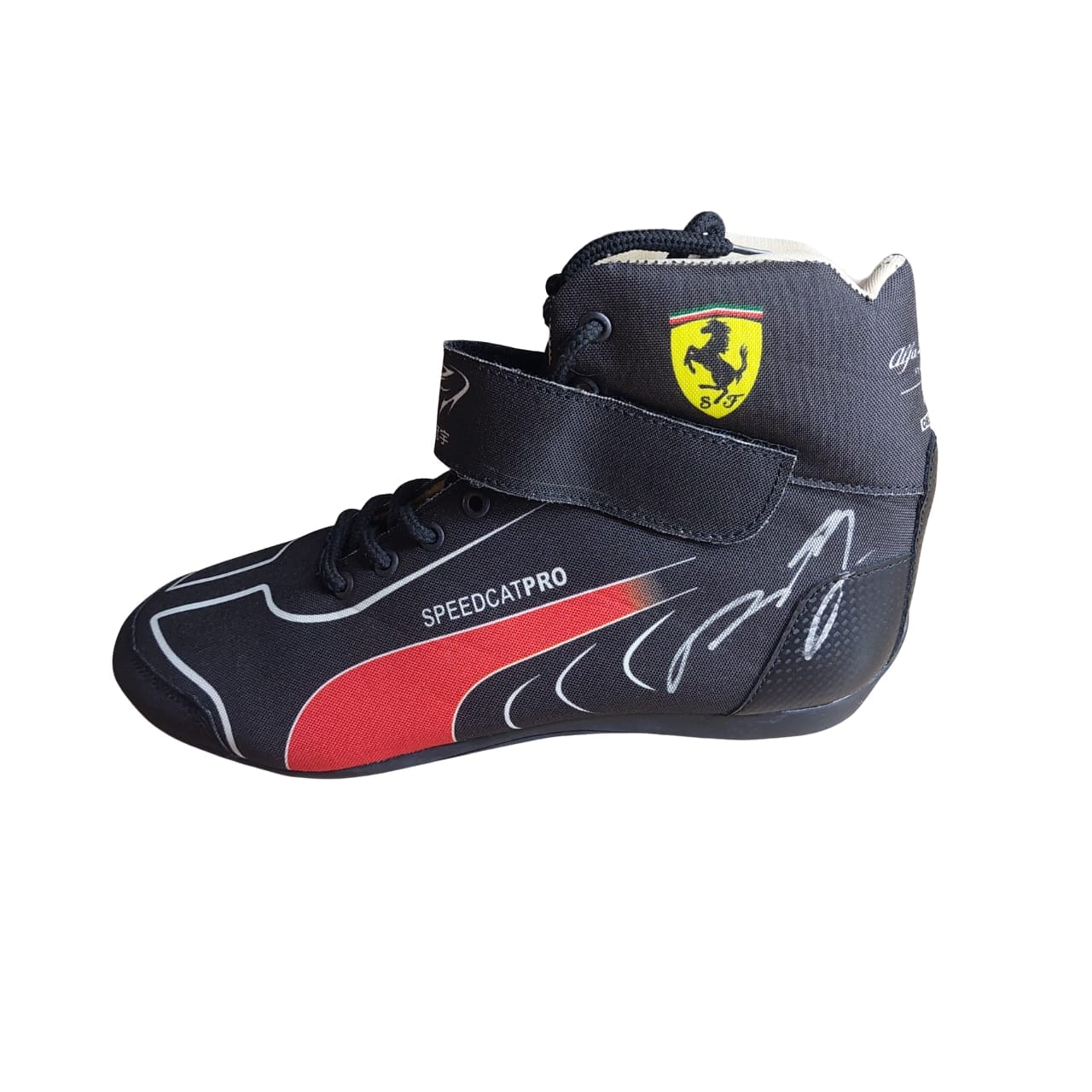 This signed Formula 1 replica boot is a must-have for any motorsport enthusiast or collector. Crafted with attention to detail, the boot mirrors the design worn by him during his racing career, showcasing the iconic branding and colors associated with his team.
